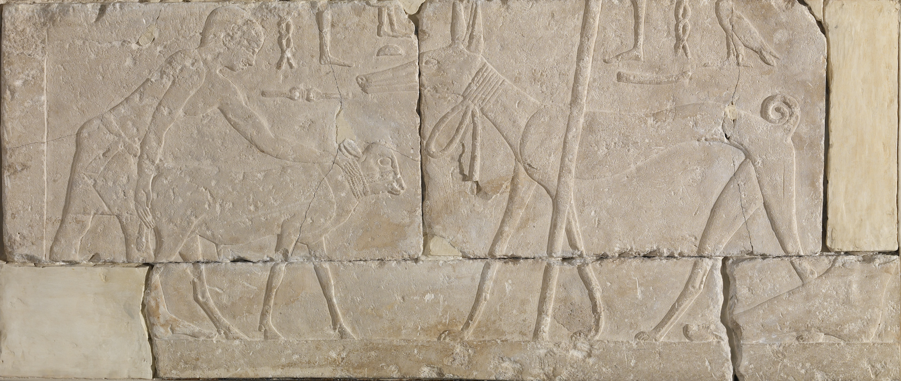 | Inscriptions | [Transcription] Inscription above the dog: bh3; [Translation] Inscription above the dog: Beha [name of dog]; [Transcription] Inscription above the calf: jn.t bhz; [Translation] Inscription above the calf: Bring the calf. | |||||||||||||||||||||||