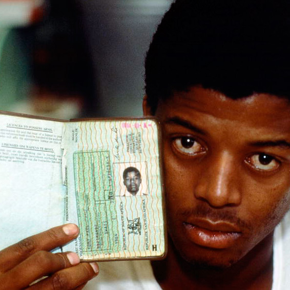 An unnamed man is photographed with his dompas in 1985. (UN Photo / CC BY-NC-ND)