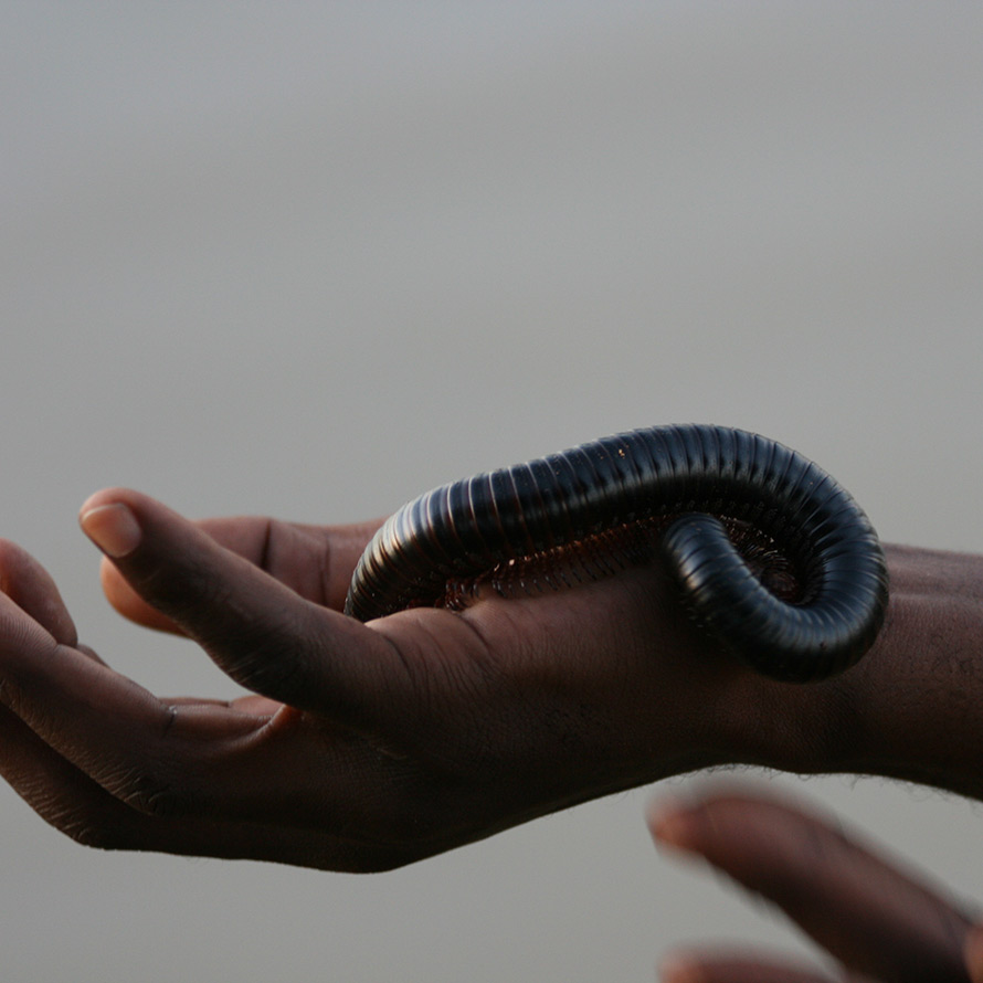 shongololo, songololo (noun) – Large brown millipede, from the isiXhosa and isiZulu ukushonga (to roll up).