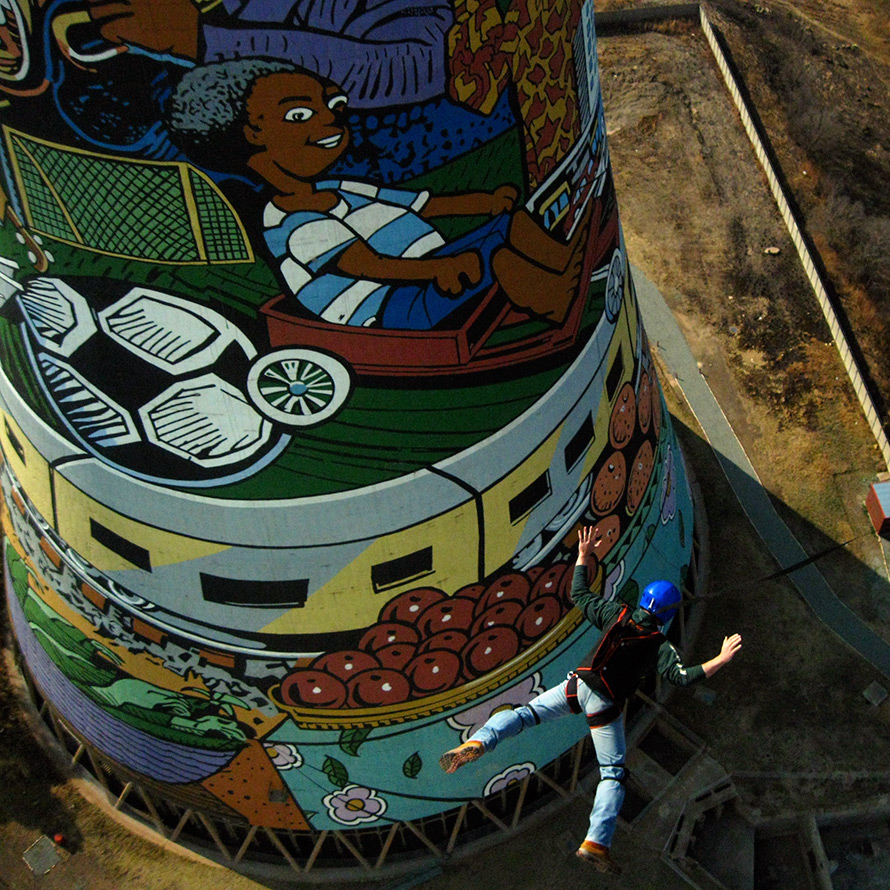Base jumping off the Orlando Towers in Soweto. (Annette Lyn O’Neil / CC BY NC-ND)