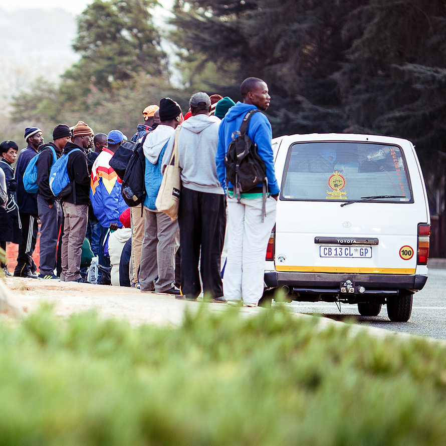 taxi (noun) – Generally a minibus used to transport a large number of people, and the most-used form of transport in South Africa.