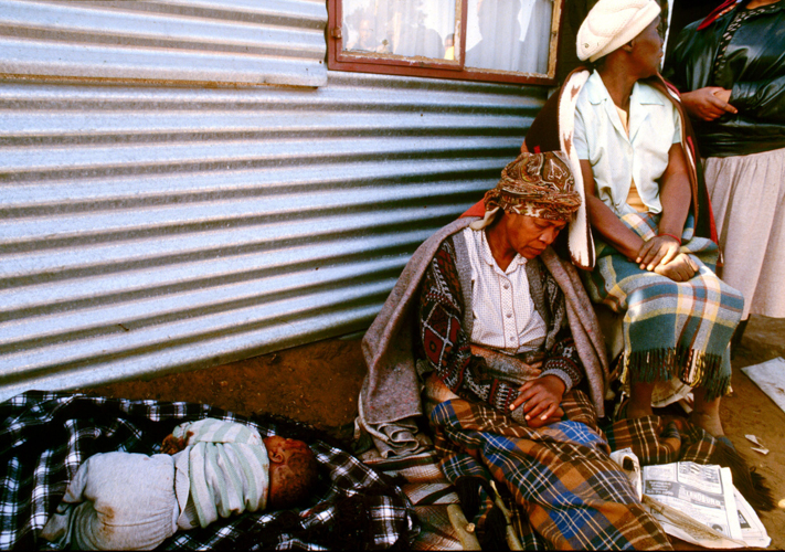 17 June 1992, the aftermath of the Boipatong massacre. Photographer Greg Marinovich describes the image: “The aunt of nine-month-old Aaron Mathope sits next to his body in Boipatong township, south of Johannesburg, 1992. On this day, 45 people were killed by Inkatha Freedom Party (IFP) supporting Zulus. Aaron and his mother were hacked to death, and the Truth and Reconciliation Commission (TRC) found both the IFP and the security forces of the then-white regime responsible.” (Greg Marinovich, University of Cape Town Digital Collections)