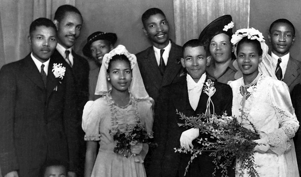 Nelson Mandela and his future first wife Evelyn Mase in the bridal party at Walter and Albertina Sisulu’s wedding on 17 July 1944. Mandela was best man. Mandela and Mase were to marry three months later, on 5 October 1944.