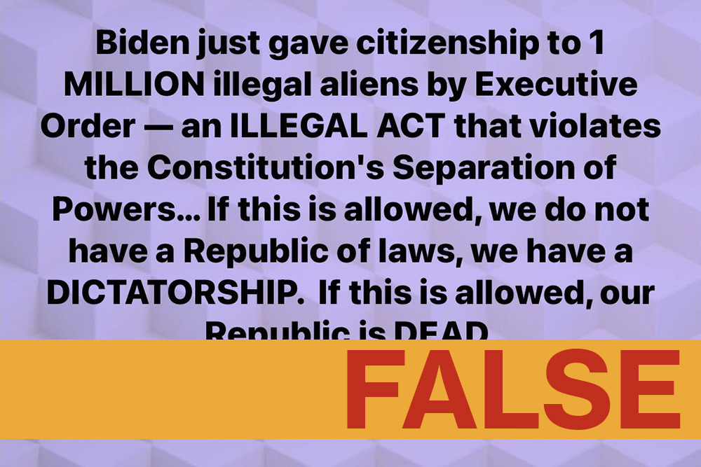 “Biden just gave citizenship to 1 MILLION illegal aliens by Executive Order,” reads a claim circulating on social media since late June 2024.*