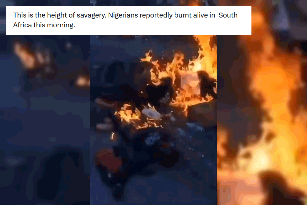 “This is the height of savagery. Nigerians reportedly burnt alive in South Africa this morning,” reads the caption of a video posted on X on 15 May 2024.